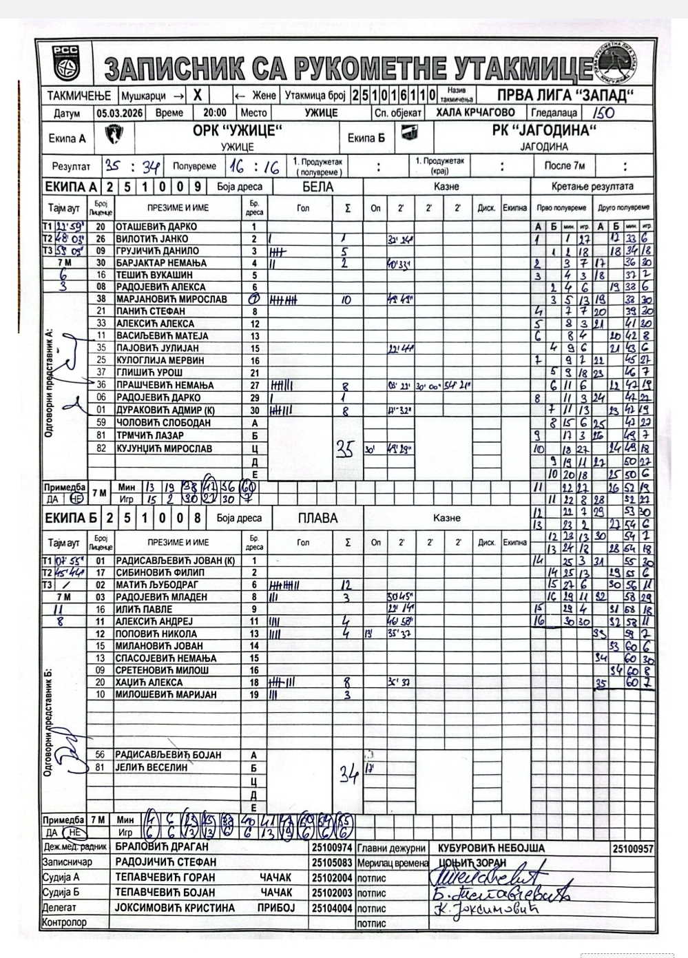 Број утакмице: ПРЛ Запад М 0110