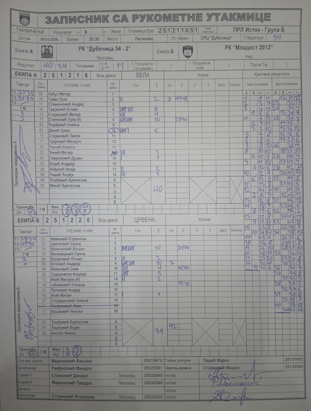 Број утакмице: ПРЛ ИстокБМ 051