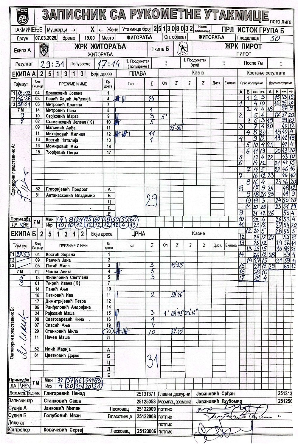 Број утакмице: ПРЛ ИстокБЖ 032