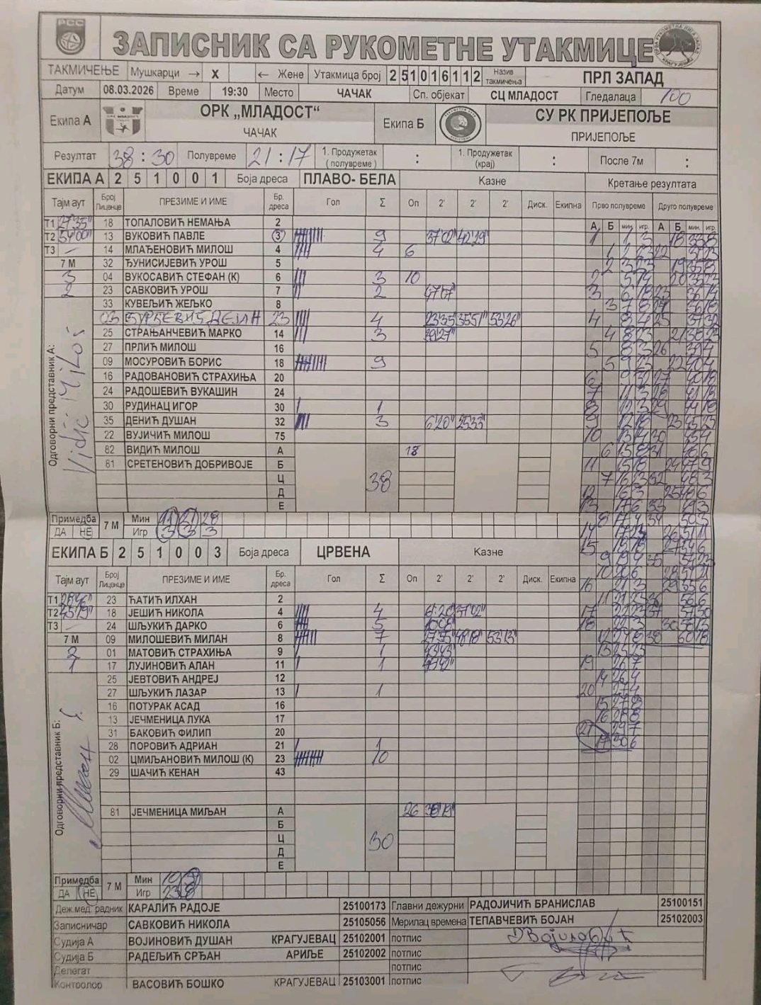 Број утакмице: ПРЛ Запад М 0112