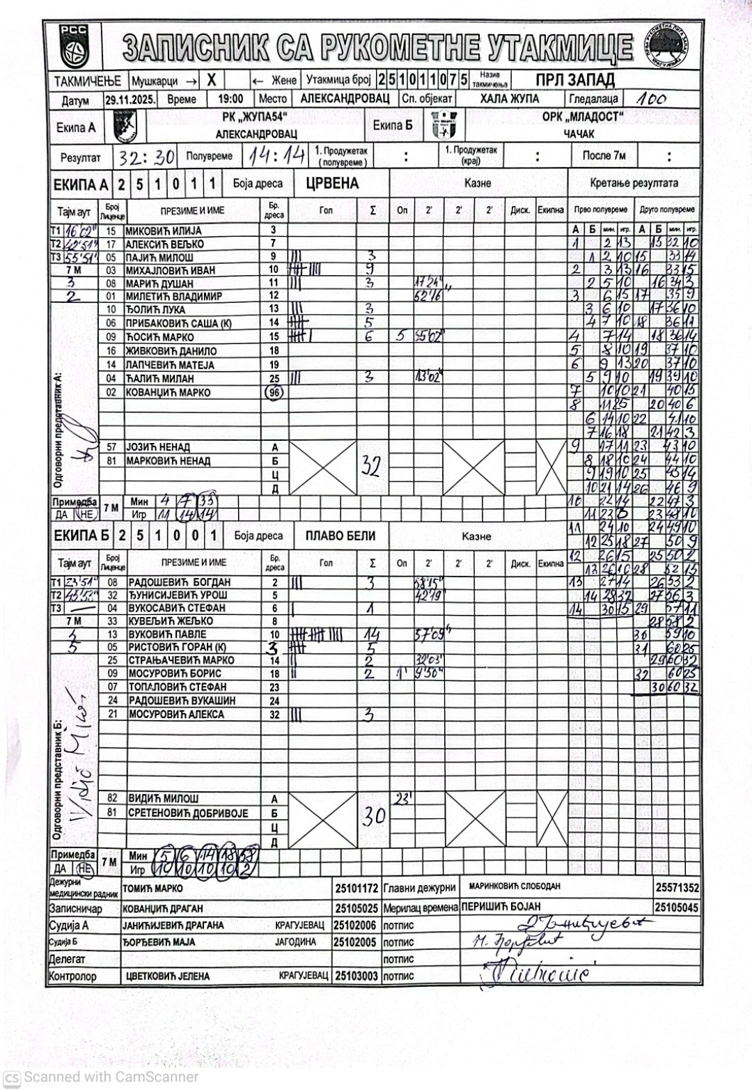 Број утакмице: ПРЛ Запад М 075