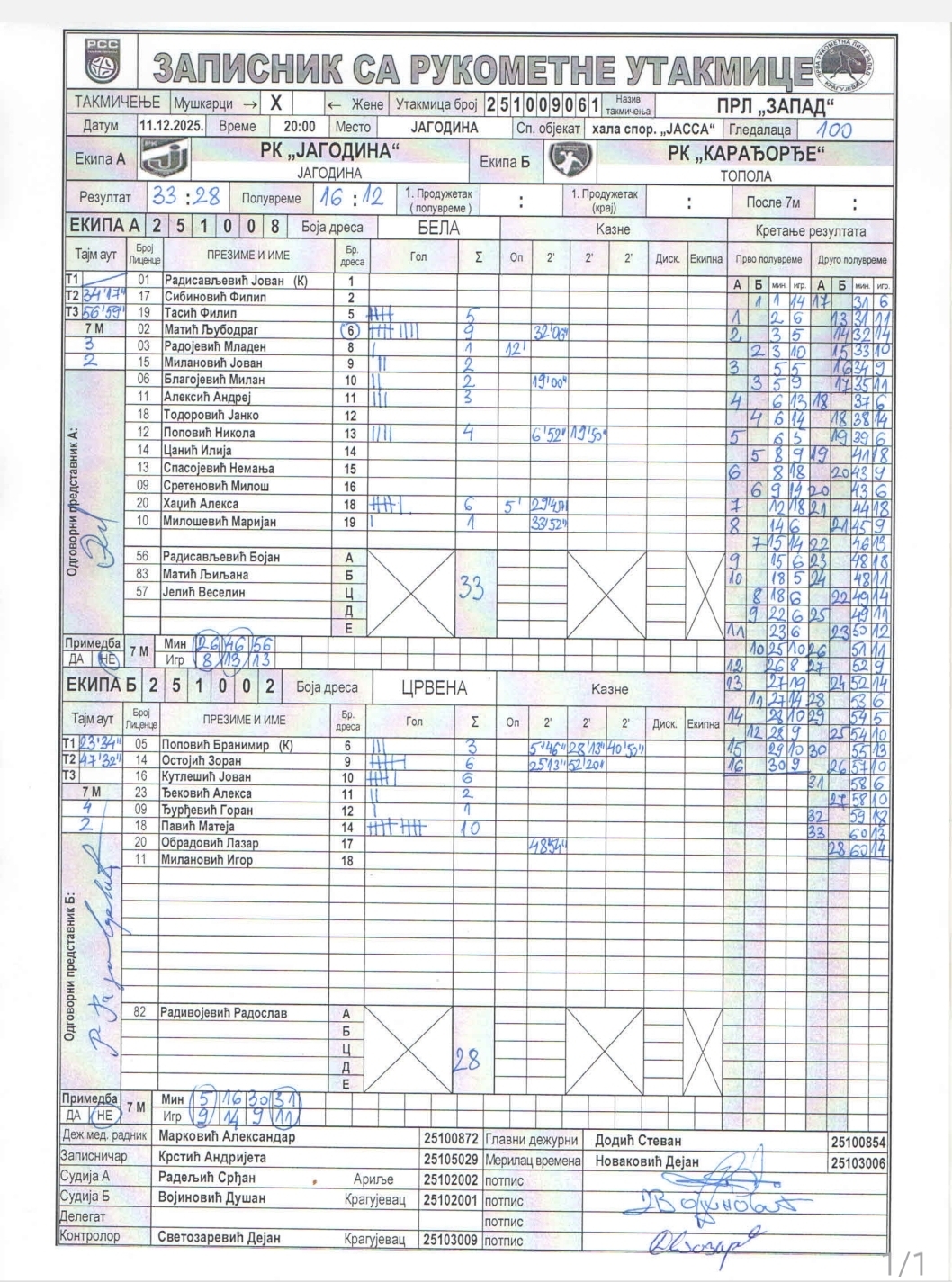 Број утакмице: ПРЛ Запад М 061