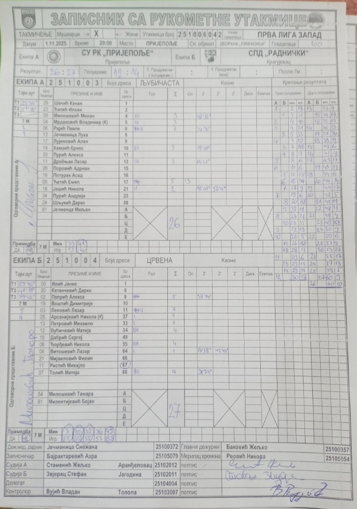 Број утакмице: ПРЛ Запад М 042
