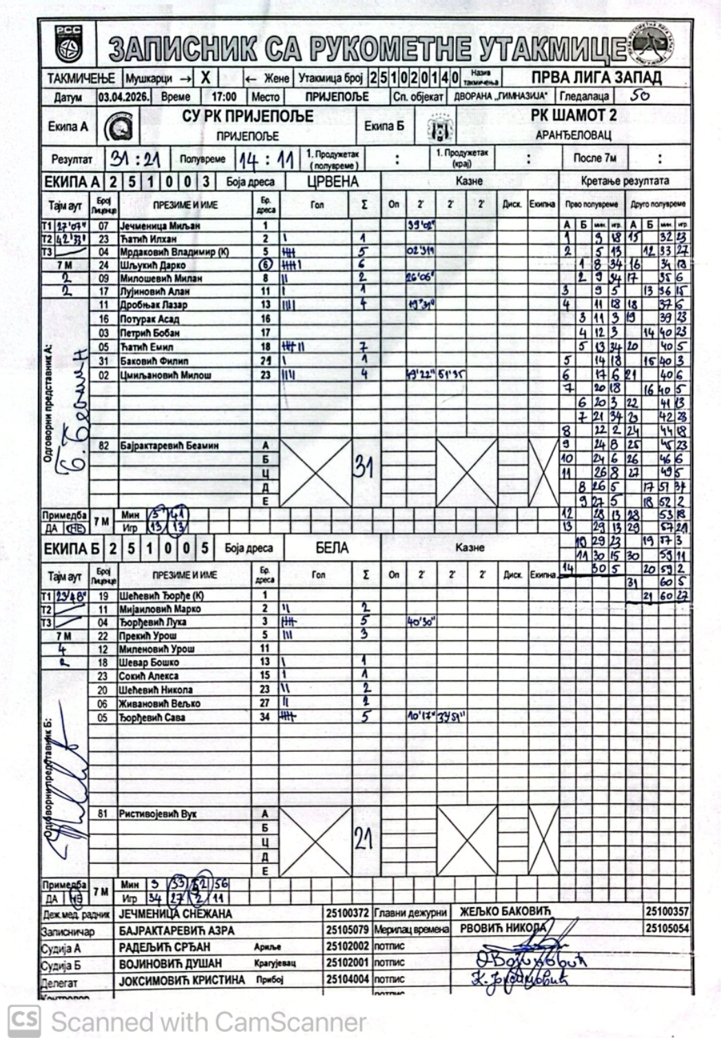 Број утакмице: ПРЛ Запад М 0140