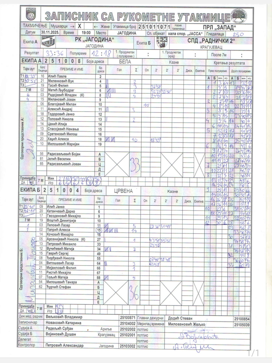 Број утакмице: ПРЛ Запад М 071