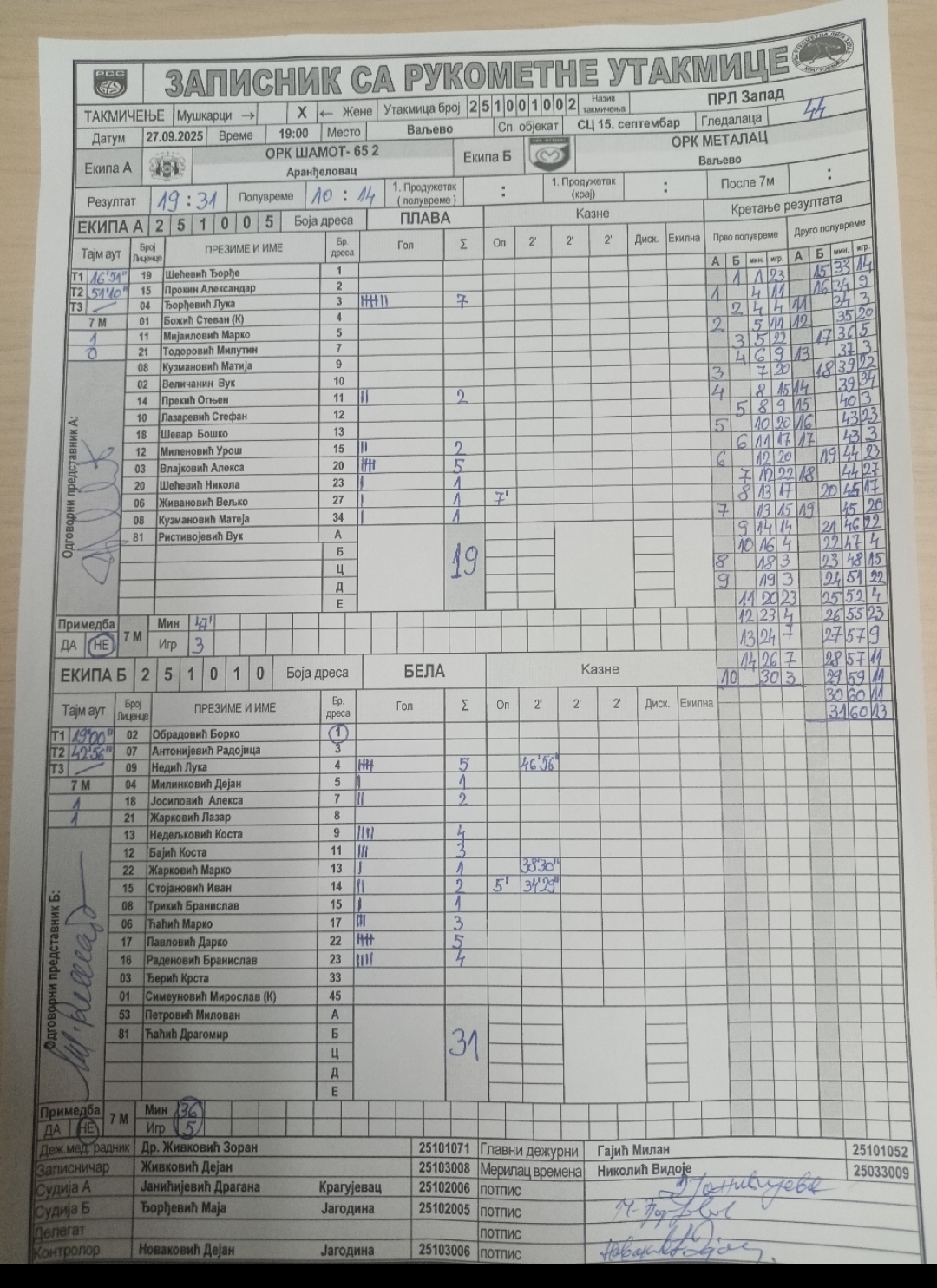 Број утакмице: ПРЛ Запад М 002
