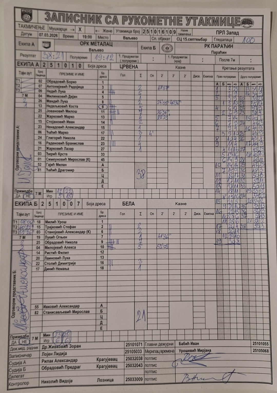 Број утакмице: ПРЛ Запад М 0109