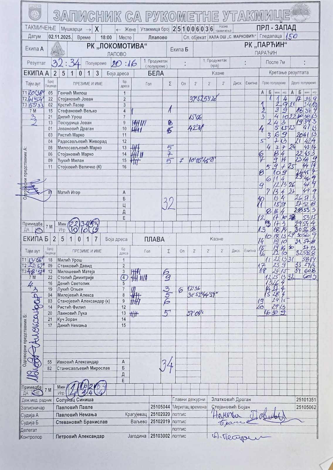 Број утакмице: ПРЛ Запад М 036