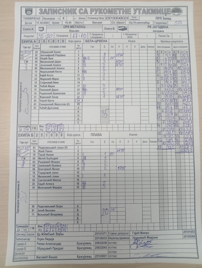 Број утакмице: ПРЛ Запад М 025