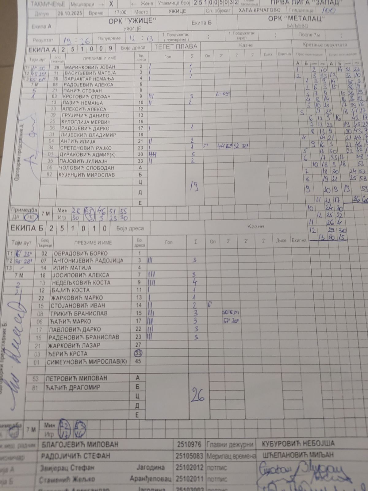 Број утакмице: ПРЛ Запад М 032