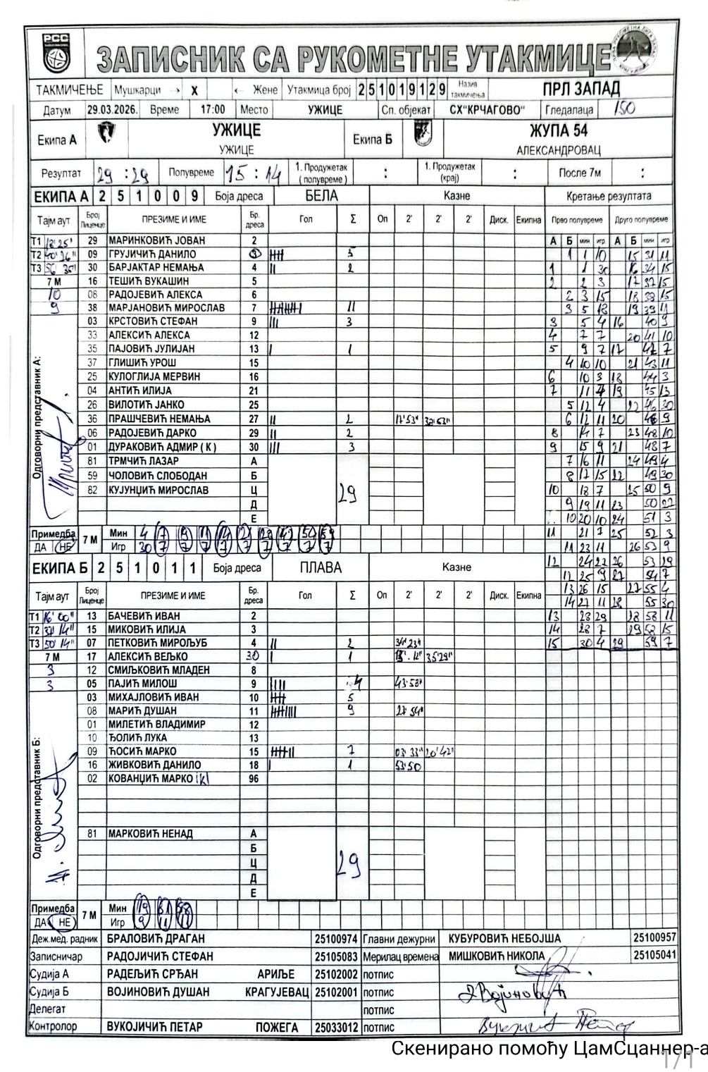 Број утакмице: ПРЛ Запад М 0129