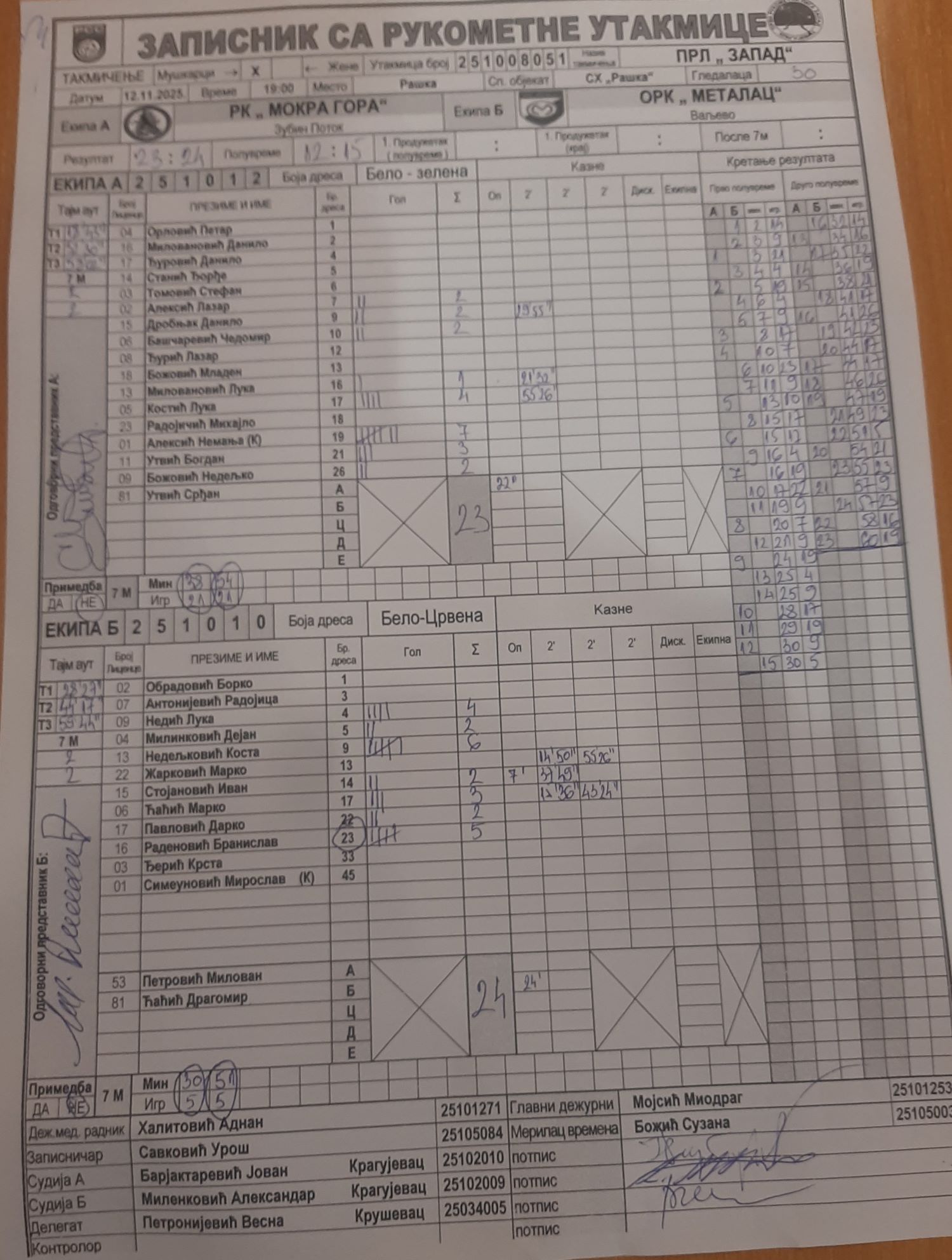 Број утакмице: ПРЛ Запад М 051