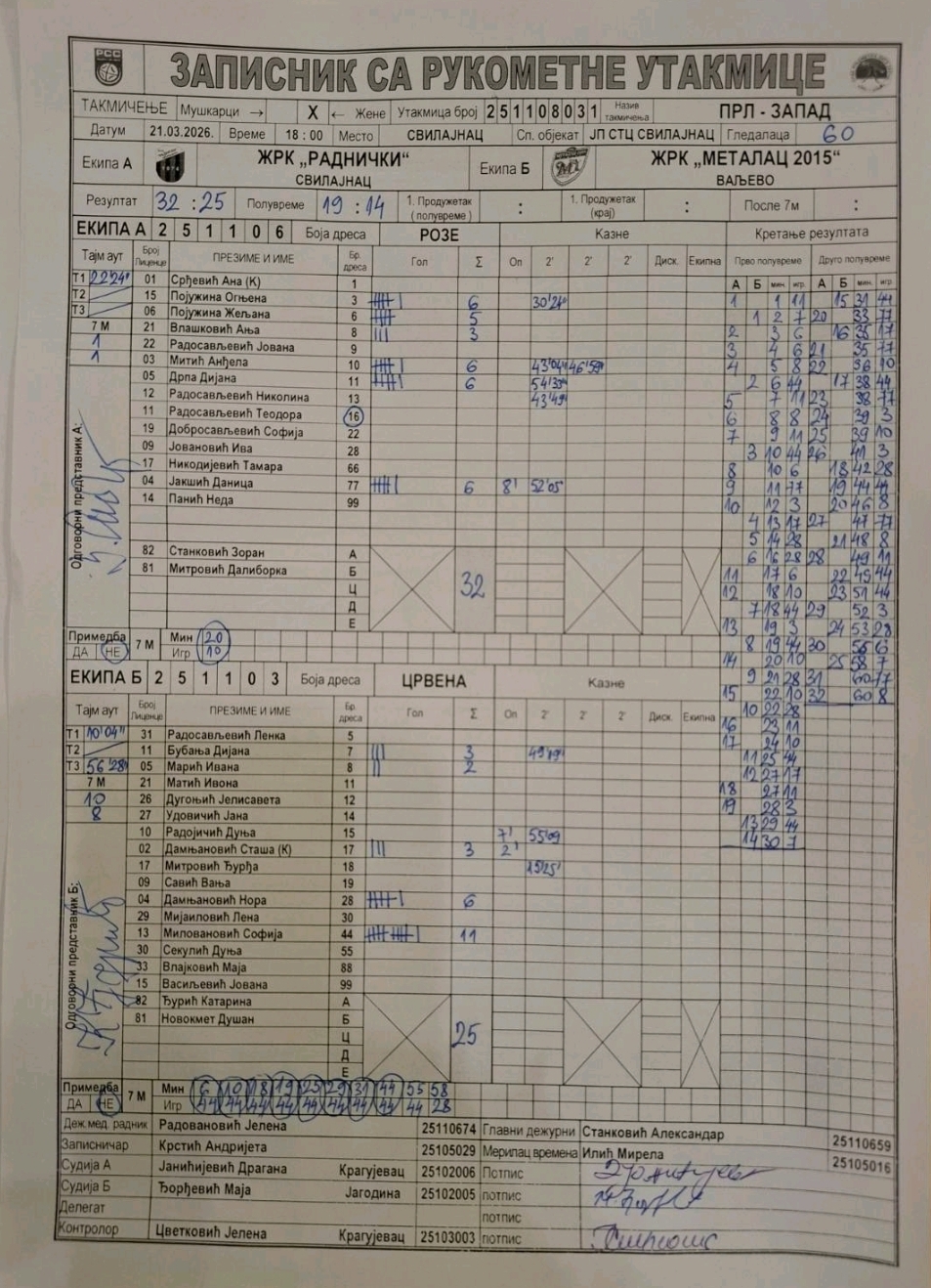 Број утакмице: ПРЛ Запад Ж 031