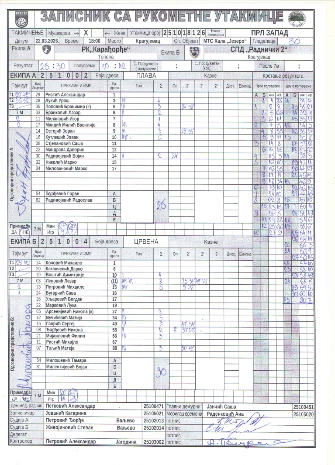 Број утакмице: ПРЛ Запад М 0126