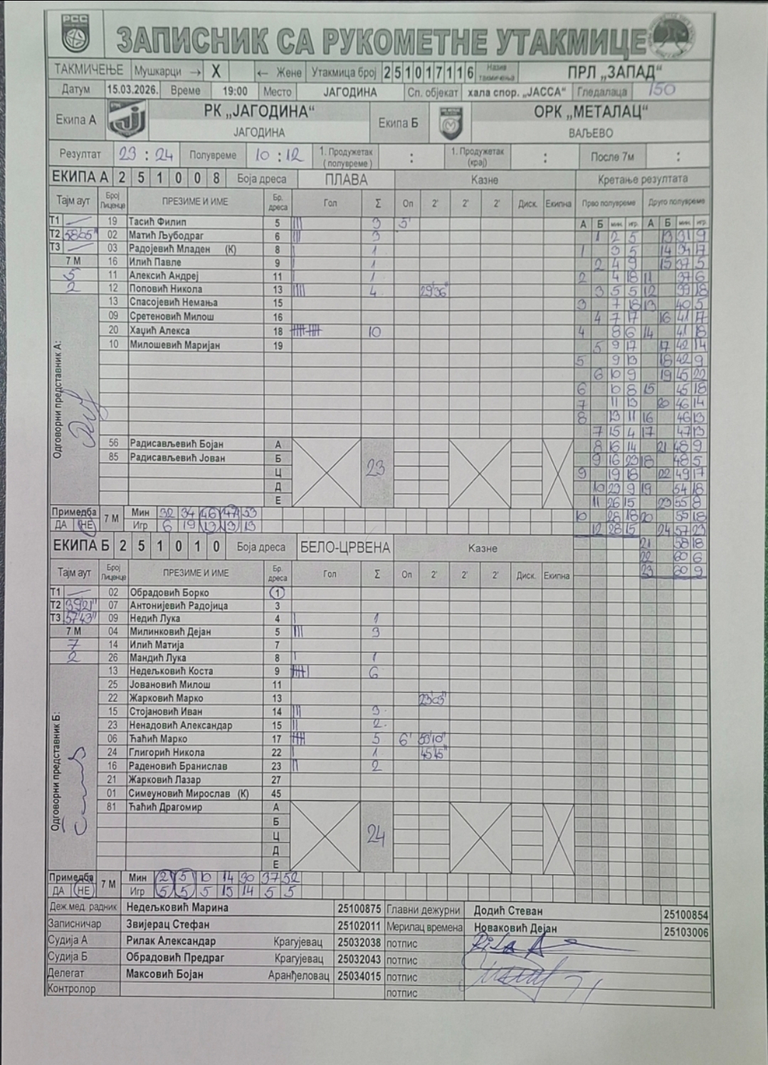 Број утакмице: ПРЛ Запад М 0116