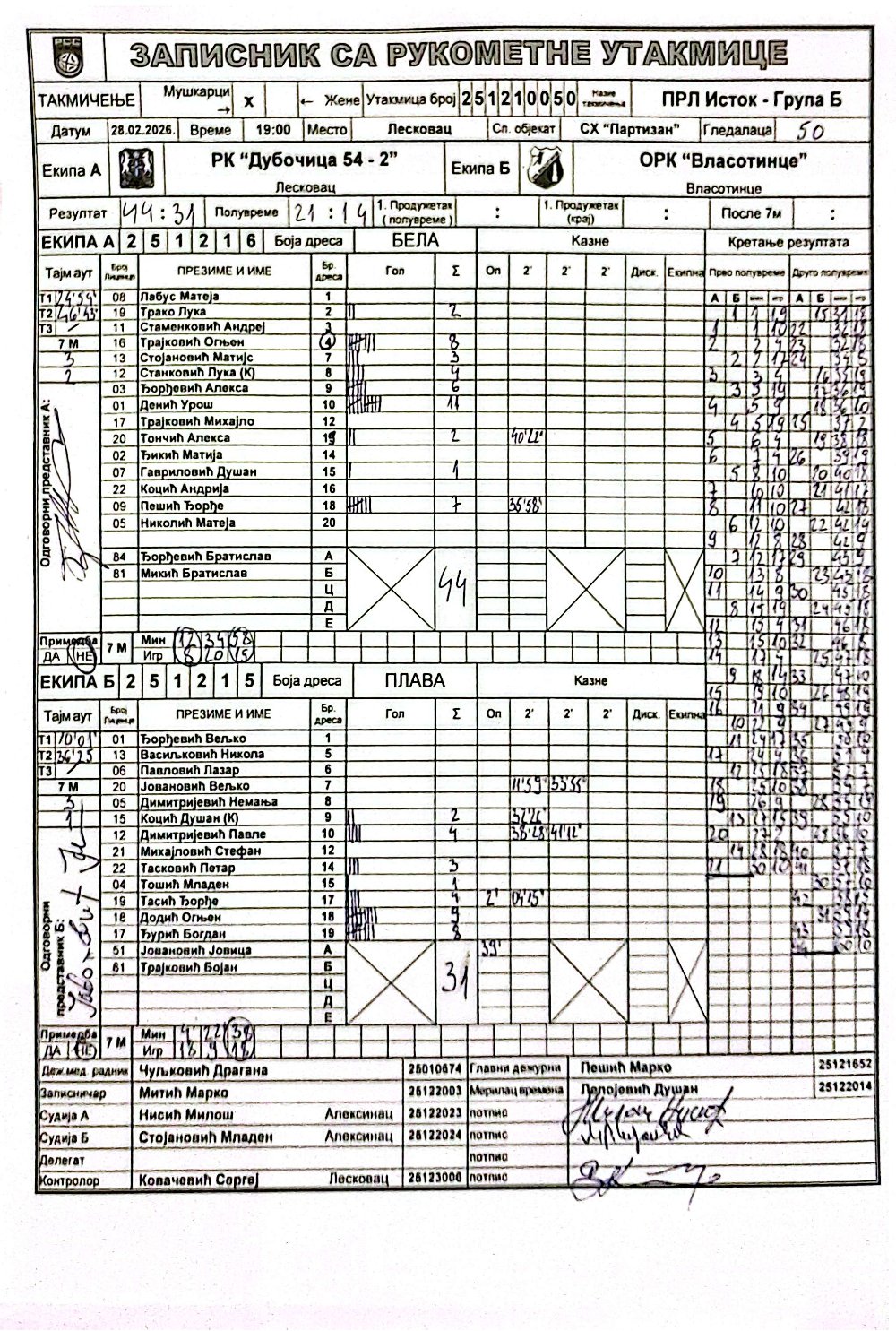 Број утакмице: ПРЛ ИстокБМ 050