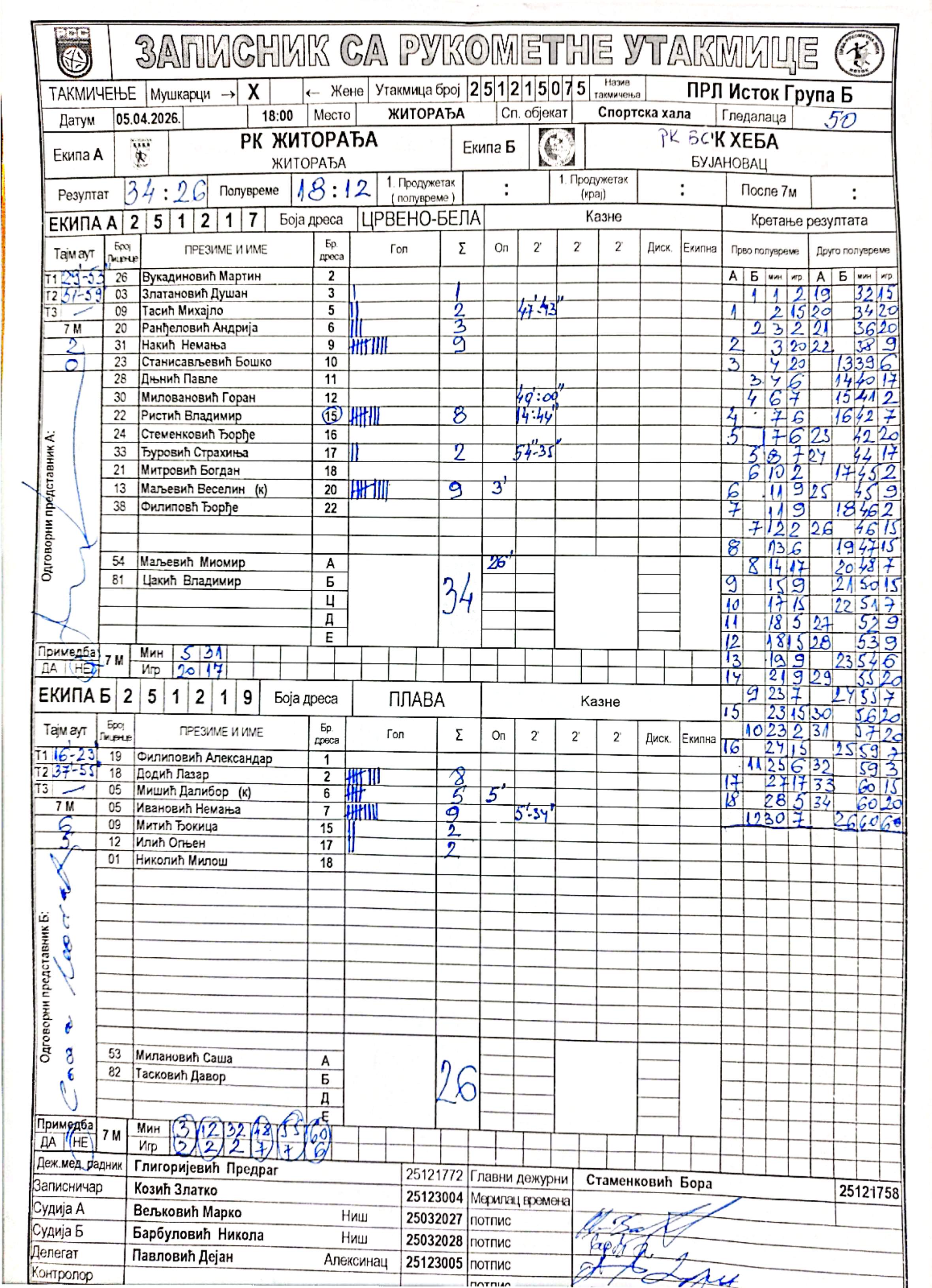 ПРЛ Исток мушкарци - ПРЛ Исток Б мушкарци
