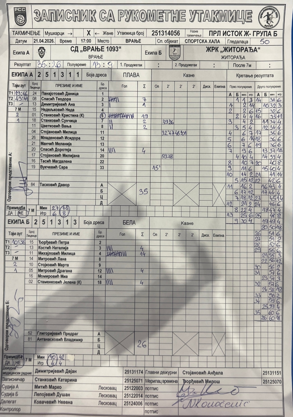 Број утакмице: ПРЛ ИстокБЖ 056