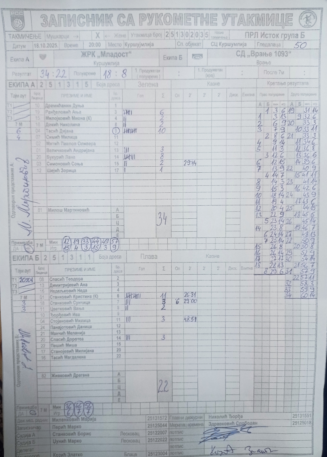 Број утакмице: ПРЛ ИстокБЖ 007