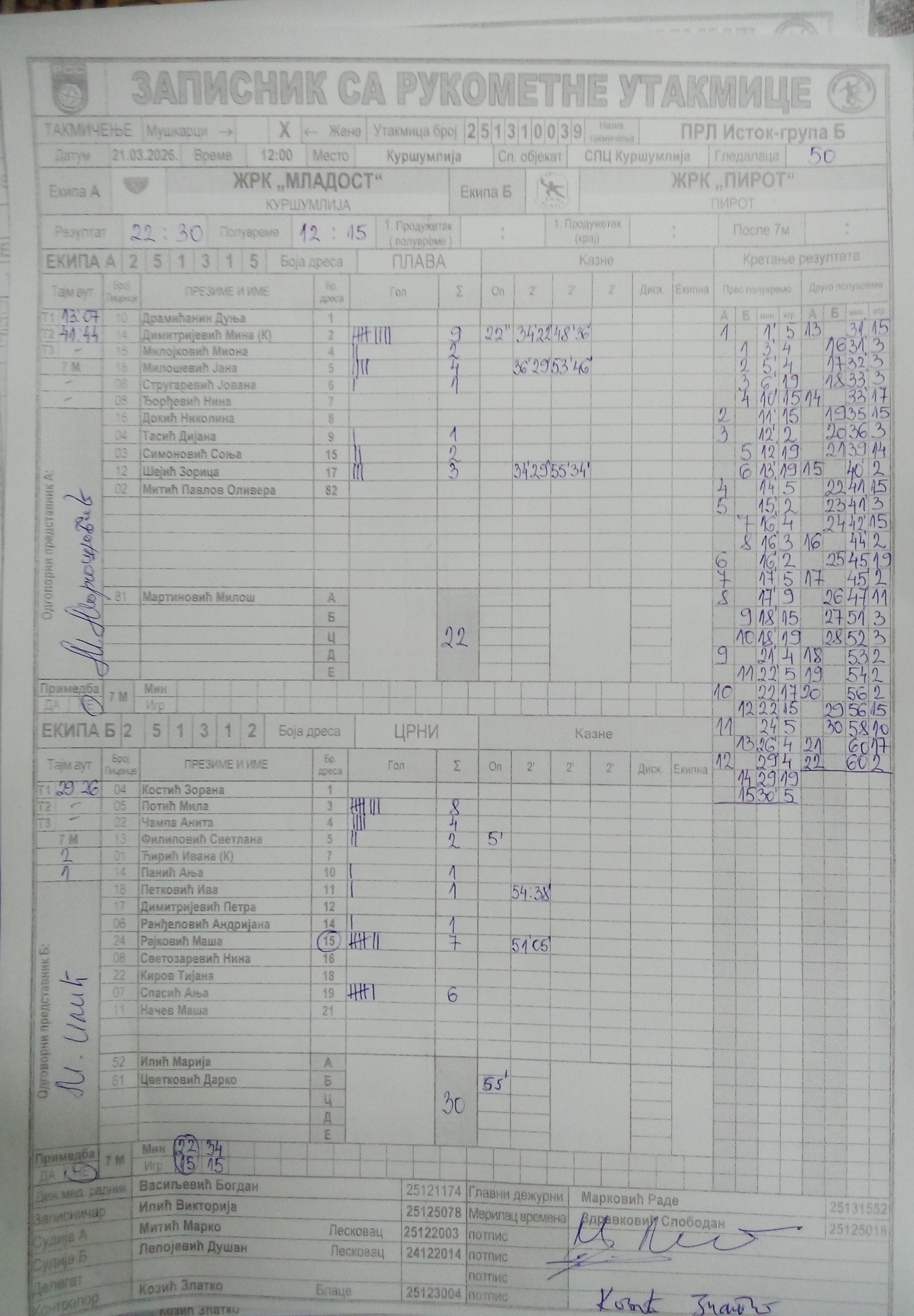 Број утакмице: ПРЛ ИстокБЖ 039