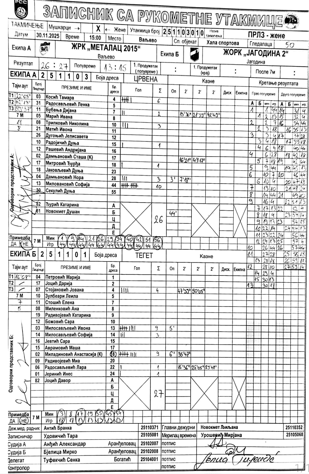 Број утакмице: ПРЛ Запад Ж 010