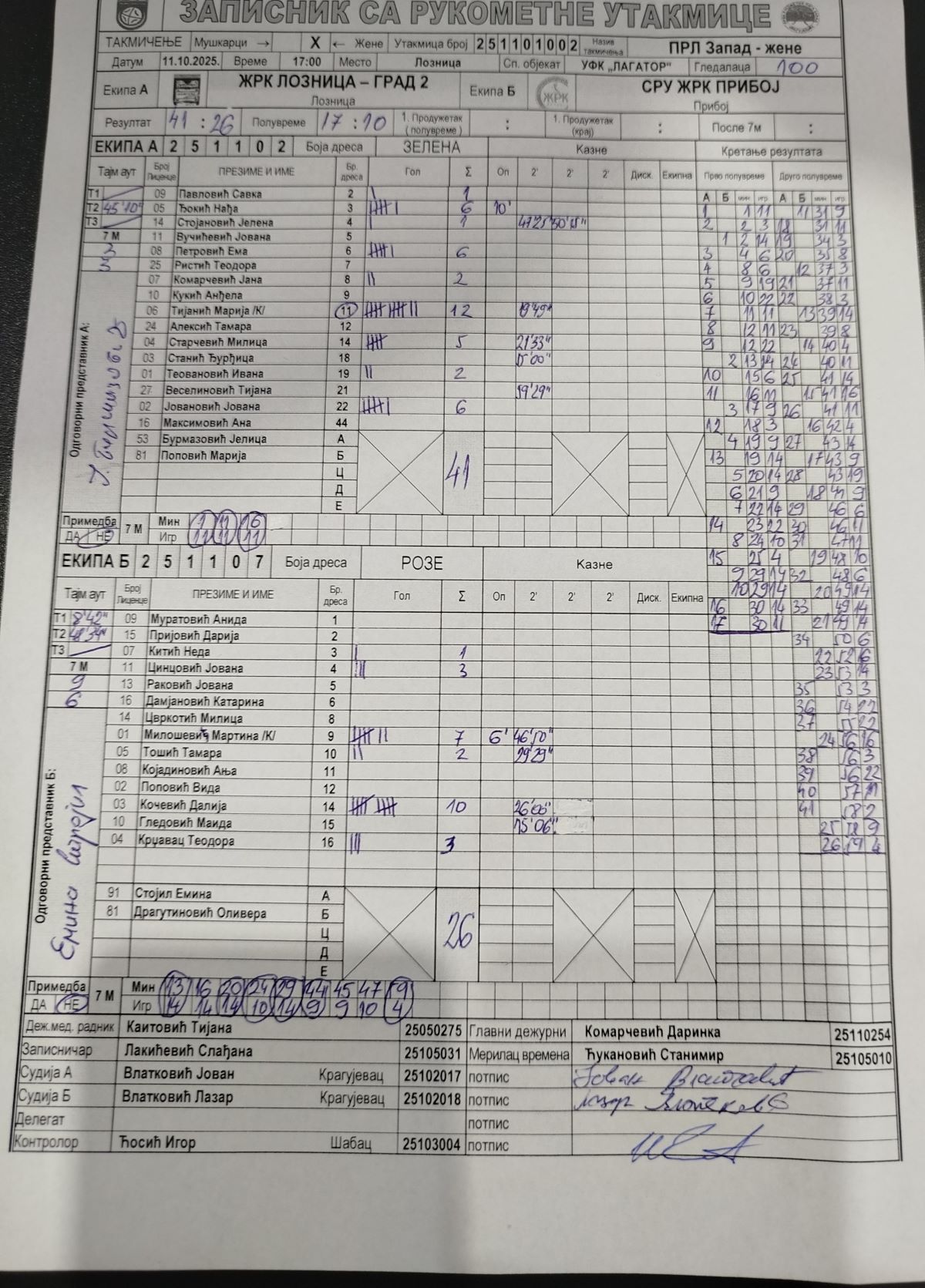 Број утакмице: ПРЛ Запад Ж 002